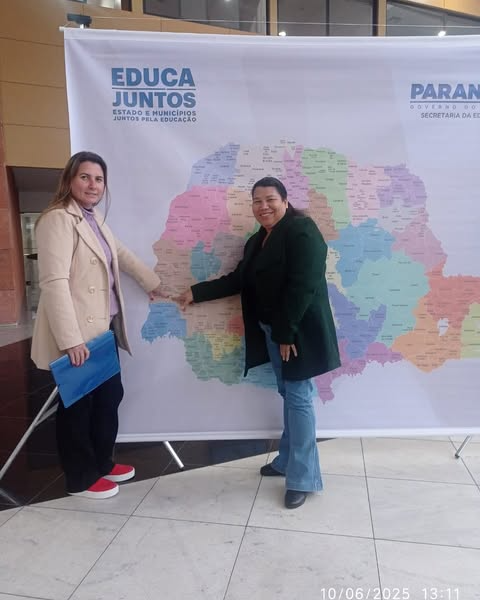 Nossa Secretária de Educação, Leila, e a pedagoga da secretaria, Roseli, estiveram em Curitiba participando do evento de divulgação dos resultados de alfabetização do programa Educa Juntos 2024, promovido pelo Governo do Estado.